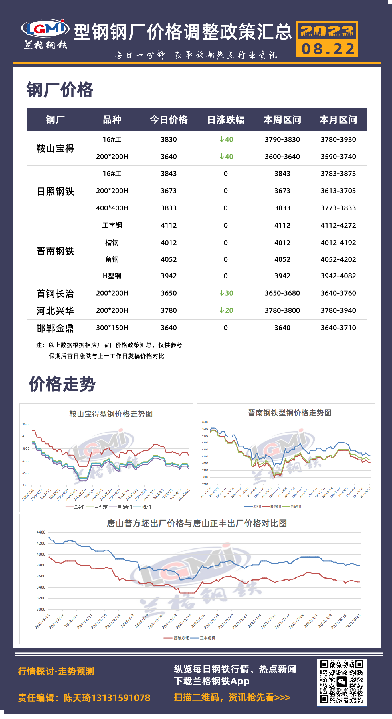 8月22日型钢钢厂价格调整政策汇总