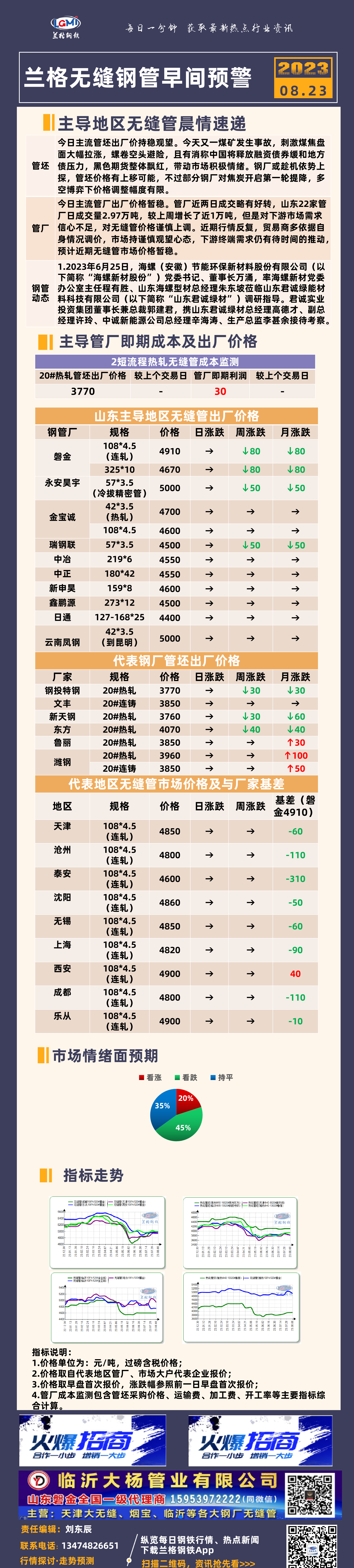 8月23日兰格无缝钢管早间预警