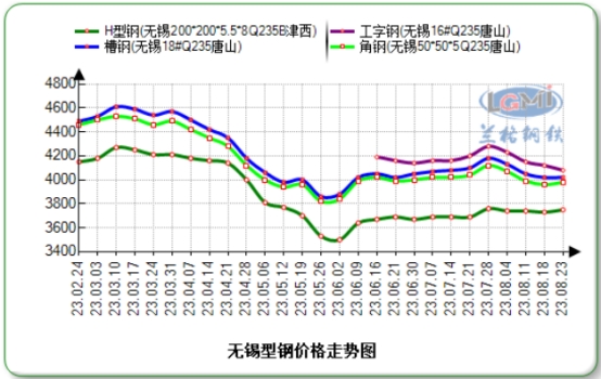 以无锡市场为例,5#角报价3980,较上一交易日价格涨20,18#槽报价4020,较上一交易日价格涨20,16#工字钢报价4080,较上一交易日价格涨20,H型钢200*200报价3750,较上一交易日价格涨20。(以上报价工角槽为过磅含税价格,H型钢为国标检尺价格)。