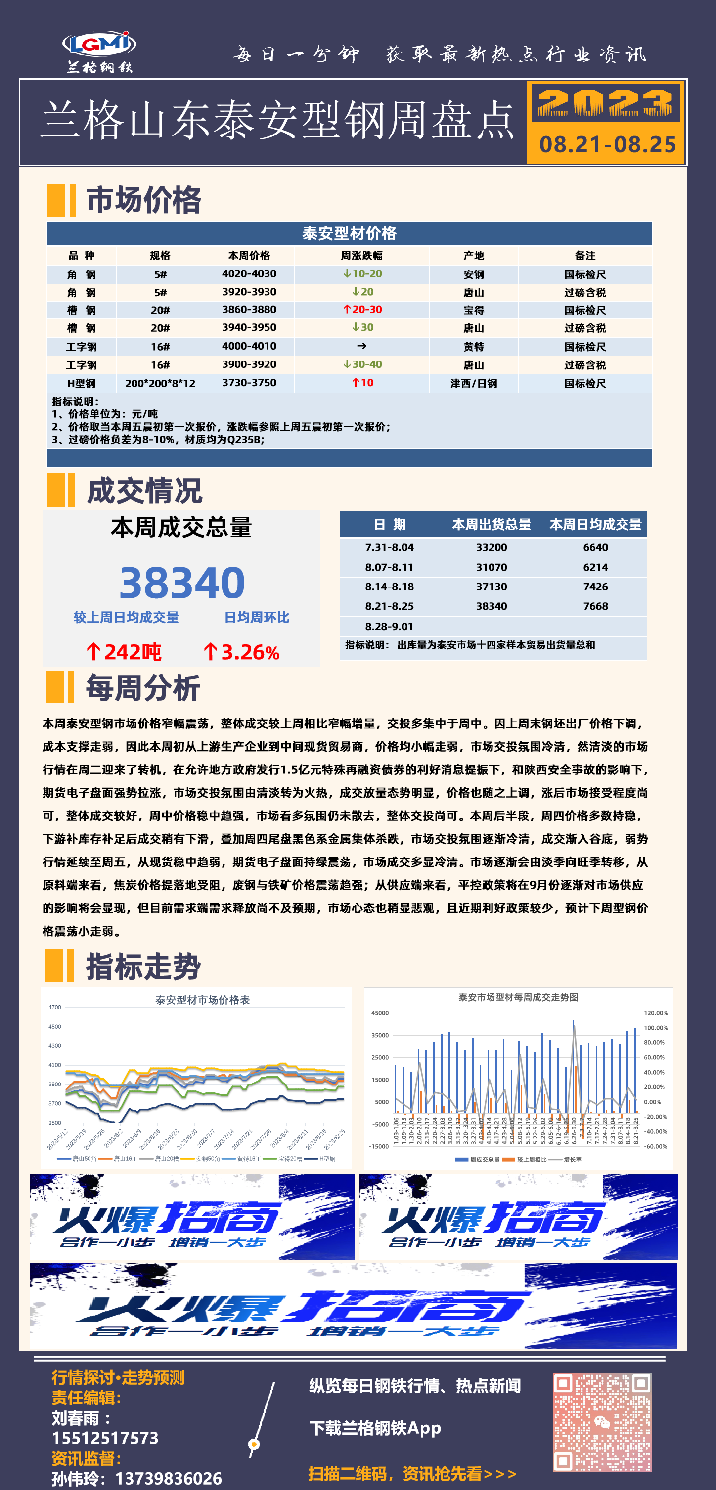 泰安型钢周盘点:价格窄幅震荡 整体成交较上周基本持平