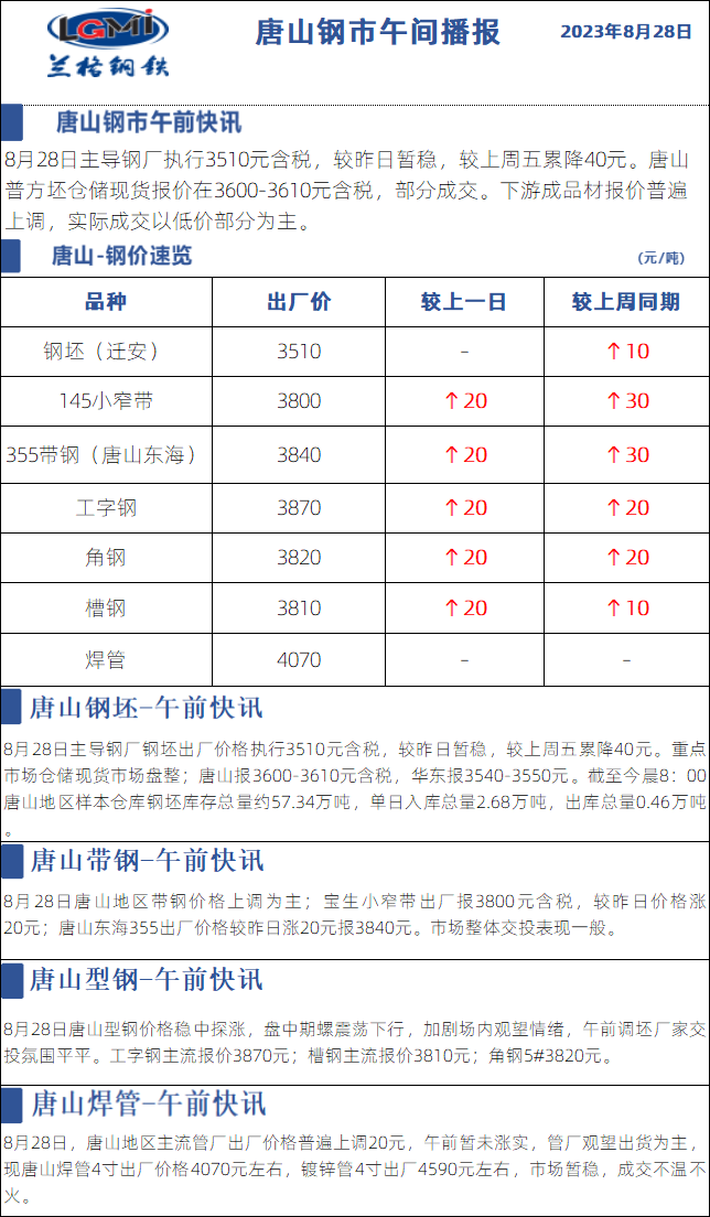 - 8月28日兰格唐山钢市午间播报2023/8/28