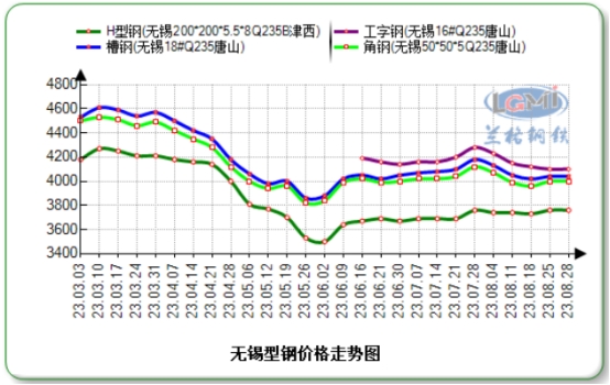 以无锡市场为例,5#角报价4000,较上一交易日价格持稳,18#槽报价4040,较上一交易日价格持稳,16#工字钢报价4100,较上一交易日价格持稳,H型钢200*200报价3760,较上一交易日价格持稳。(以上报价工角槽为过磅含税价格,H型钢为国标检尺价格)。