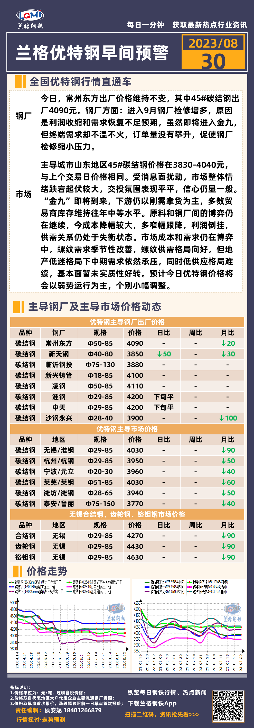 发表日期:2023/8/30 9:34:00 兰格钢铁-侯安妮 兰格钢铁网