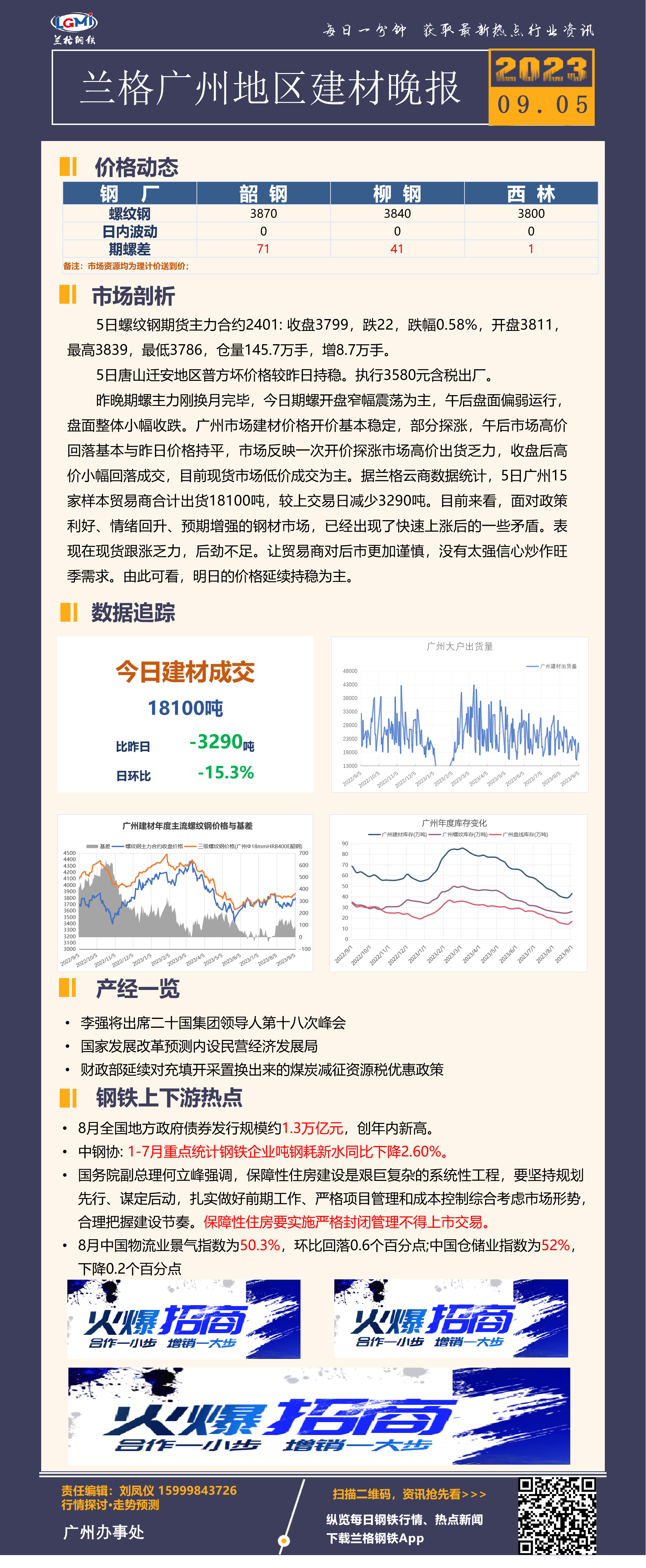 - 广州建材价格弱稳 市场成交一般2023/9/5