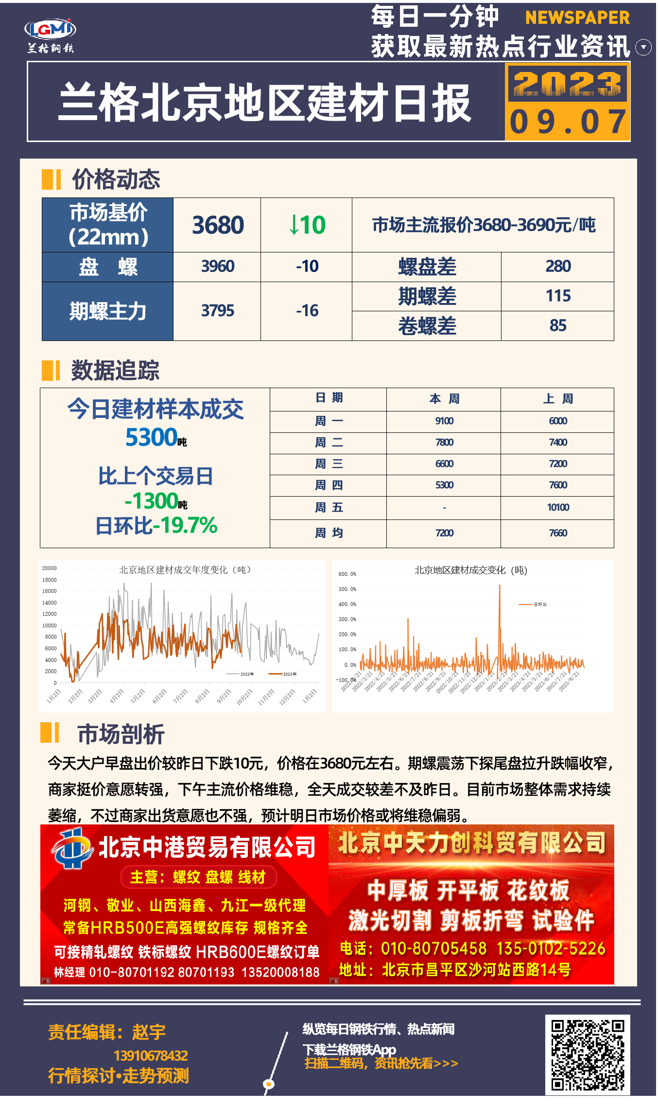 发表日期:2023/9/7 17:36:10 兰格钢铁-赵宇 兰格钢铁网