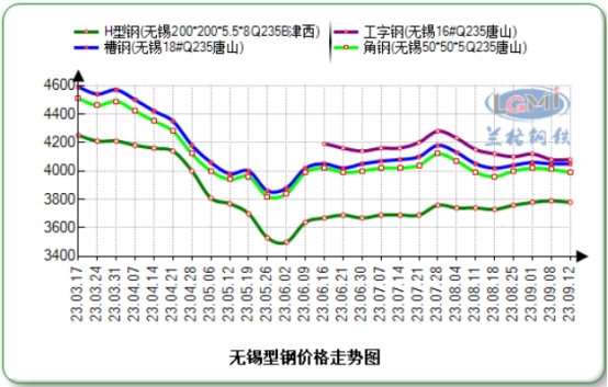 据兰格钢铁网监测数据显示,截至发稿时,以无锡市场为例:5#角报价3990,较上一交易日价格持稳,18#槽报价4050,较上一交易日价格持稳,16#工字钢报价4080,较上一交易日价格持稳,H型钢200*200报价3780,较上一交易日价格上调20。(以上报价工角槽为过磅含税价格,H型钢为国标检尺价格)。