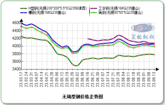据兰格钢铁网监测数据显示,截至发稿时,以无锡市场为例:5#角报价3990,较上一交易日价格持稳,18#槽报价4050,较上一交易日价格持稳,16#工字钢报价4080,较上一交易日价格持稳,H型钢200*200报价3780,较上一交易日价格持稳。(以上报价工角槽为过磅含税价格,H型钢为国标检尺价格)。