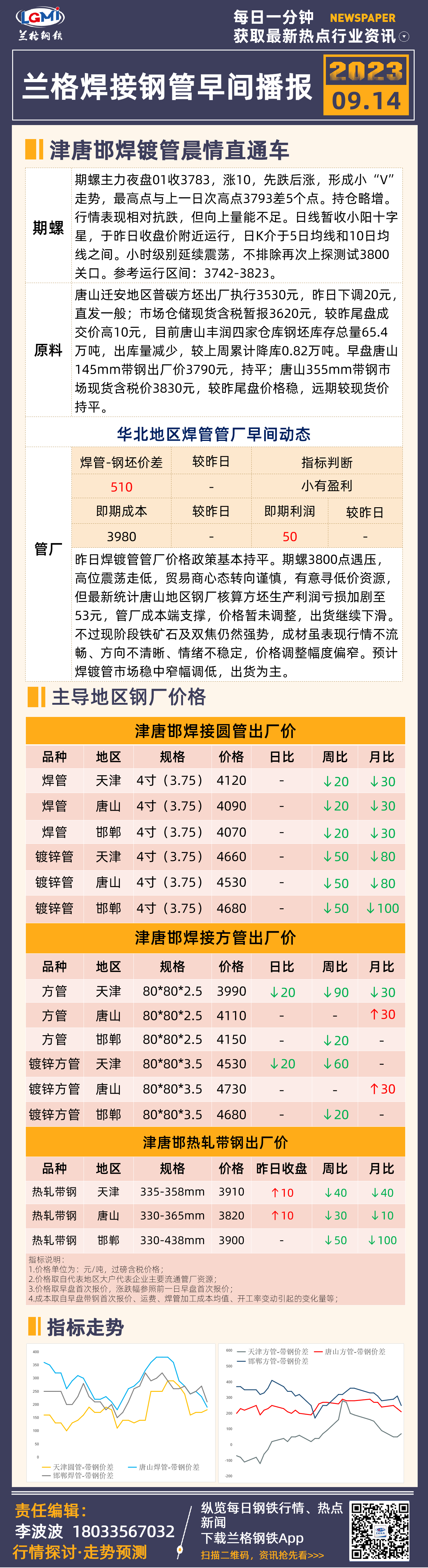 9月14日兰格津唐邯焊管、镀锌管早间速递