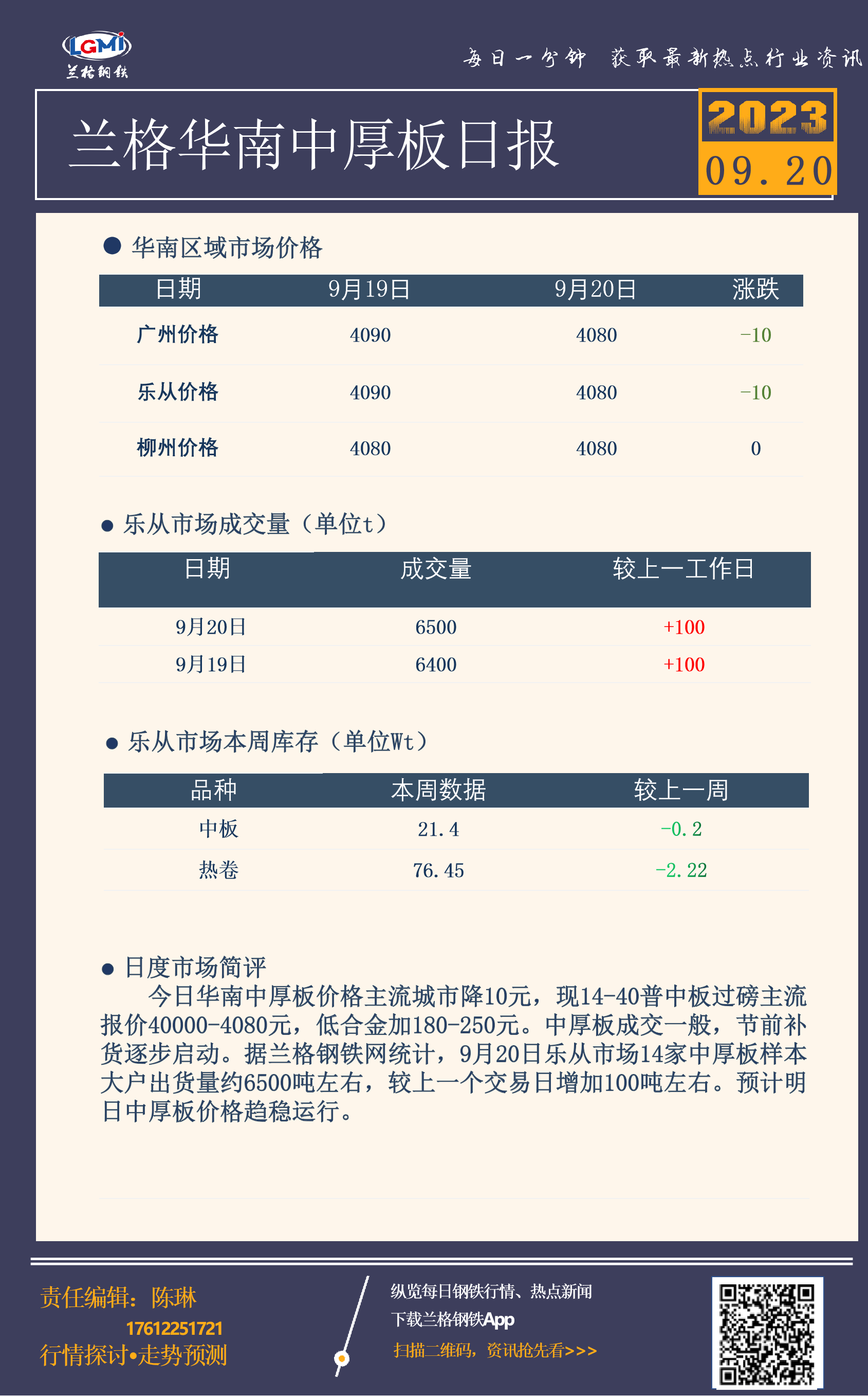 - 华南中厚板价格下跌 市场成交一般2023/9/20
