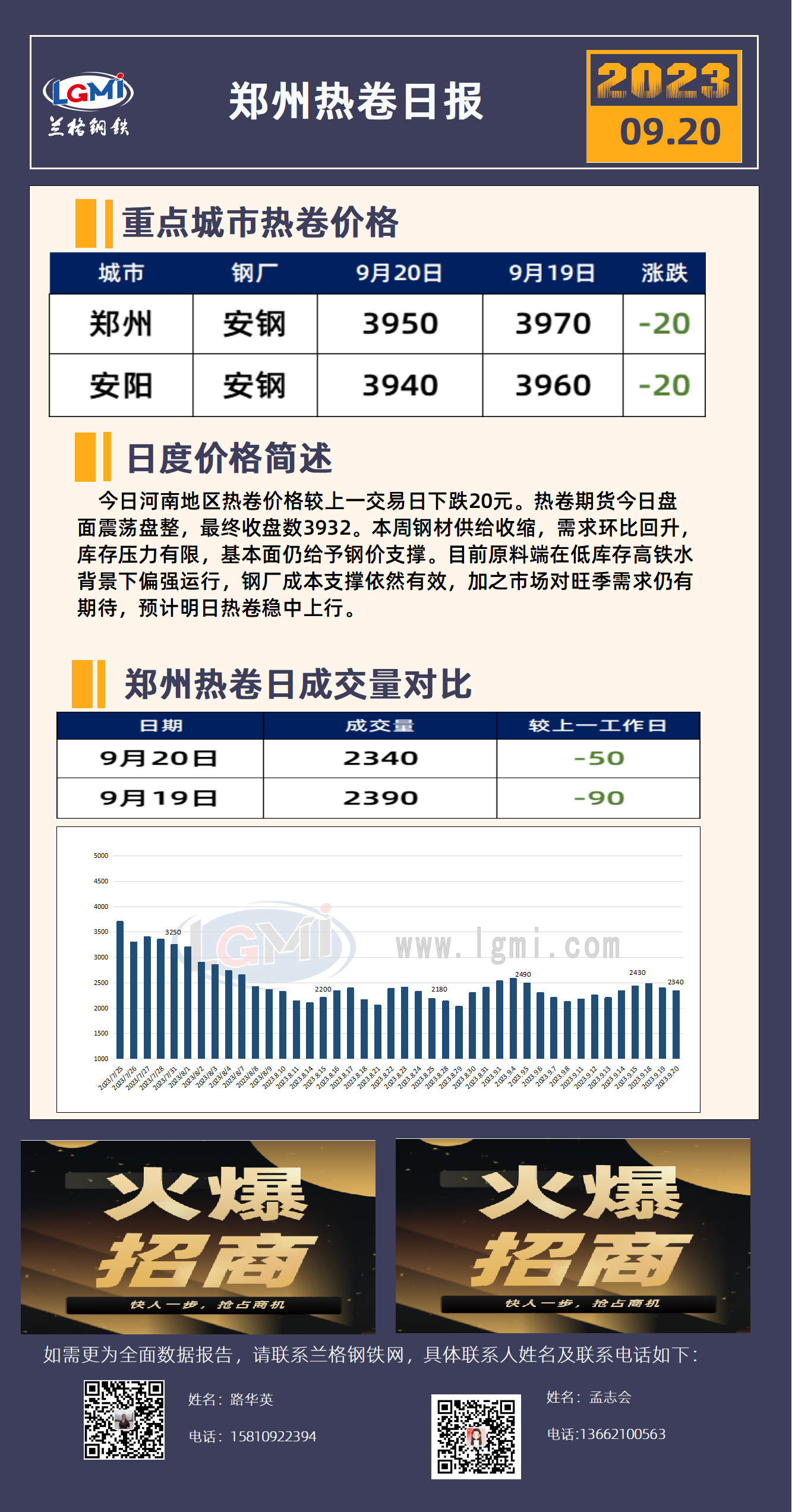 - 郑州热卷价格下跌 市场旺季需求仍有期待2023/9/20