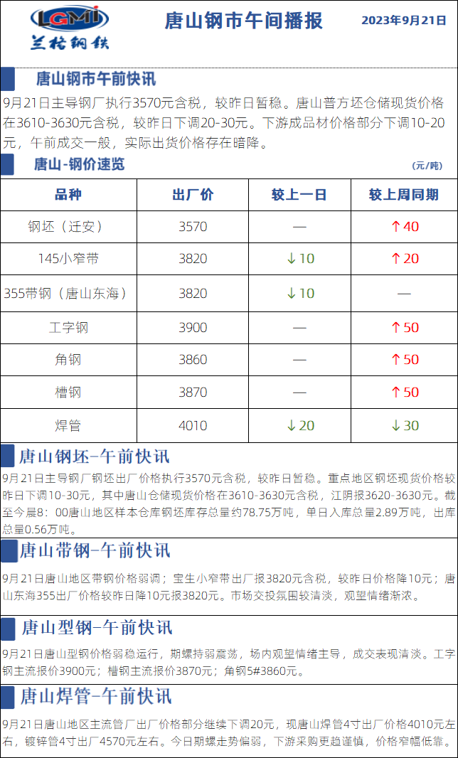 发表日期:2023/9/21 11:34:49 兰格钢铁 兰格钢铁网