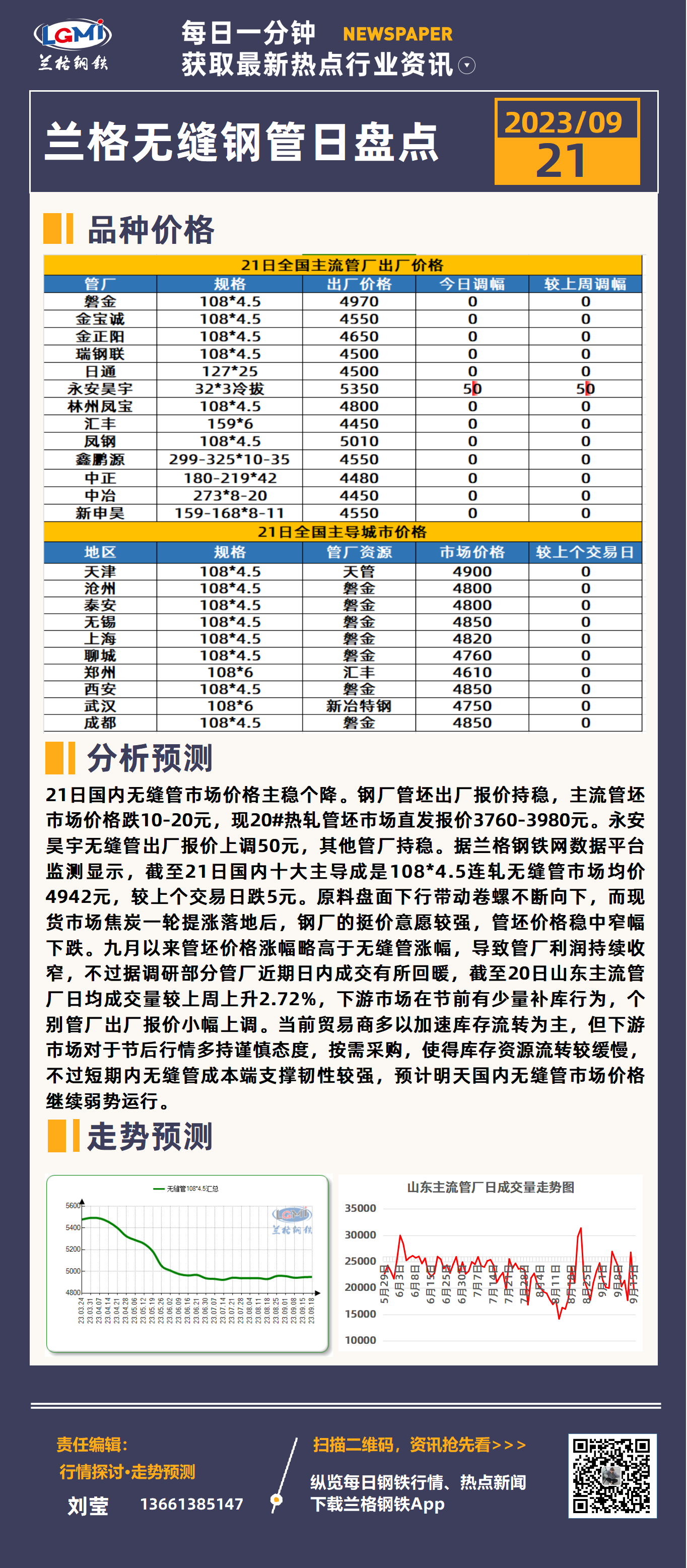发表日期:2023/9/21 16:39:27 兰格钢铁 刘莹 兰格钢铁网