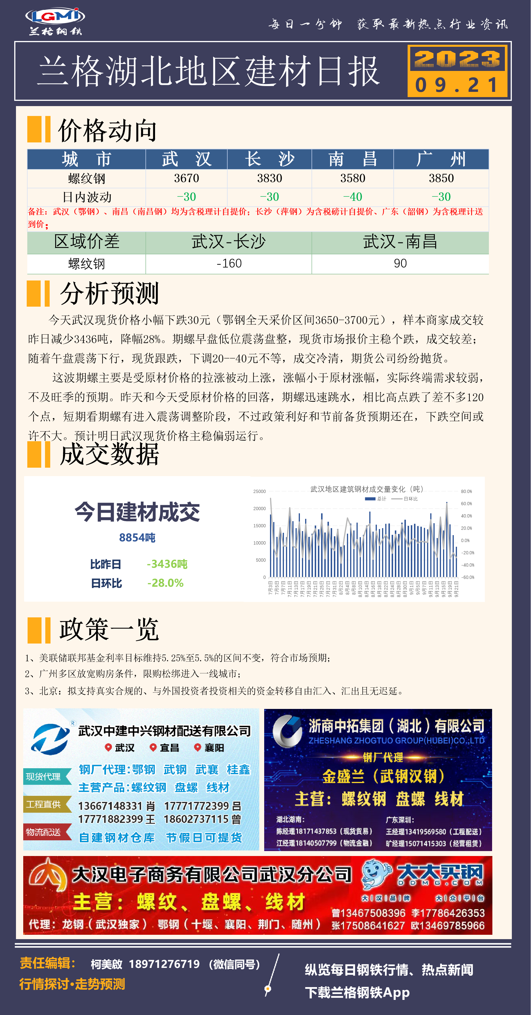 - 武汉市场建材价格主稳 成交较好2023/9/18