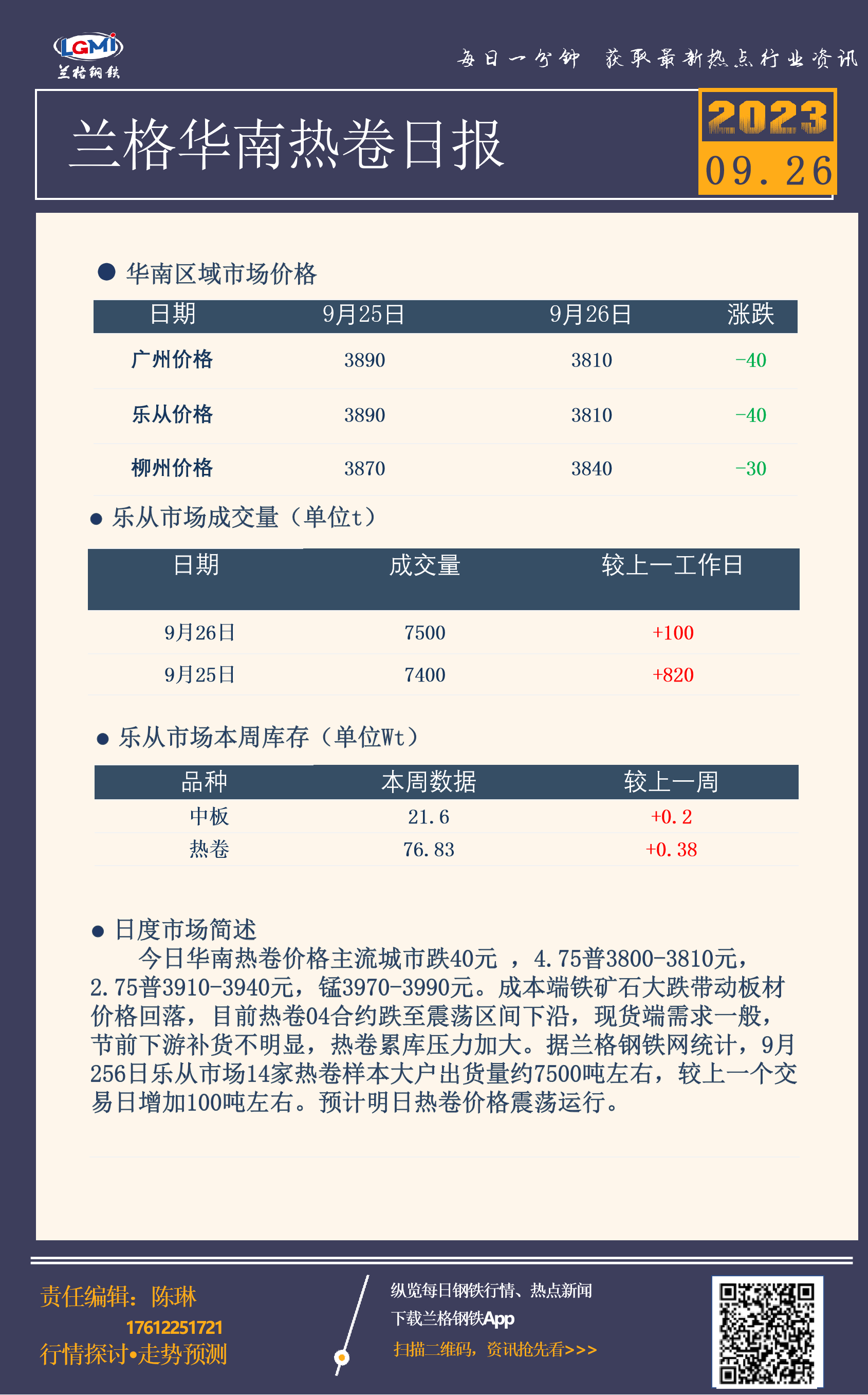 - 华南区域热卷价格部分下跌 市场成交一般2023/9/26
