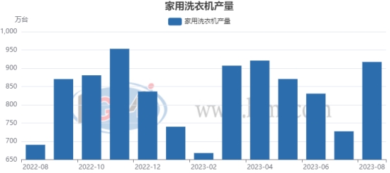 家电方面,据国家统计局数据显示,2023年8月份,全国冰箱产量838.3万台,同比增长20.8%;1-8月累计产量6297.3万台,同比增长14.3%。8月份,彩电产量1706.7万台,同比下降5.2%;1-8月累计产量12614.3万台,同比增长4.8%。8月份,洗衣机产量917.1万台,同比增长40.9%;1-8月累计产量6460.7万台,同比增长23.6%。8月份,空调产量1643.4万台,同比增长5.9%;1-8月累计产量17745.0万台,同比增长16.5%。