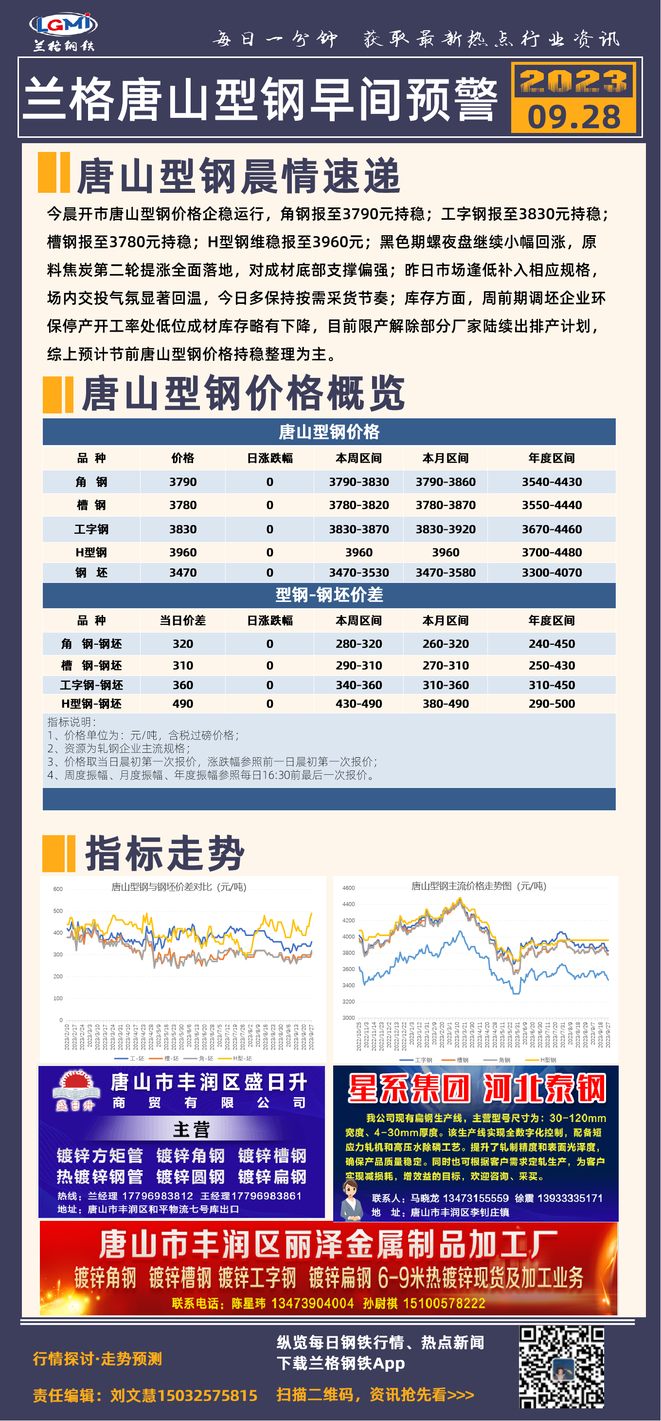 9月28日兰格唐山型钢早间预警