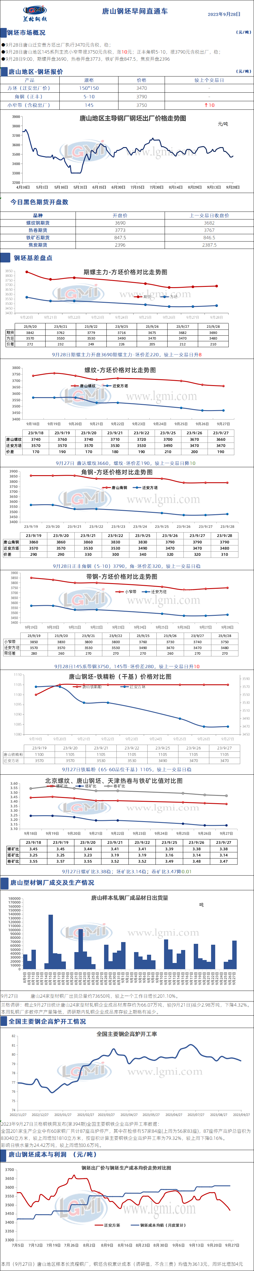- 9月28日唐山钢坯早间直通车2023/9/28