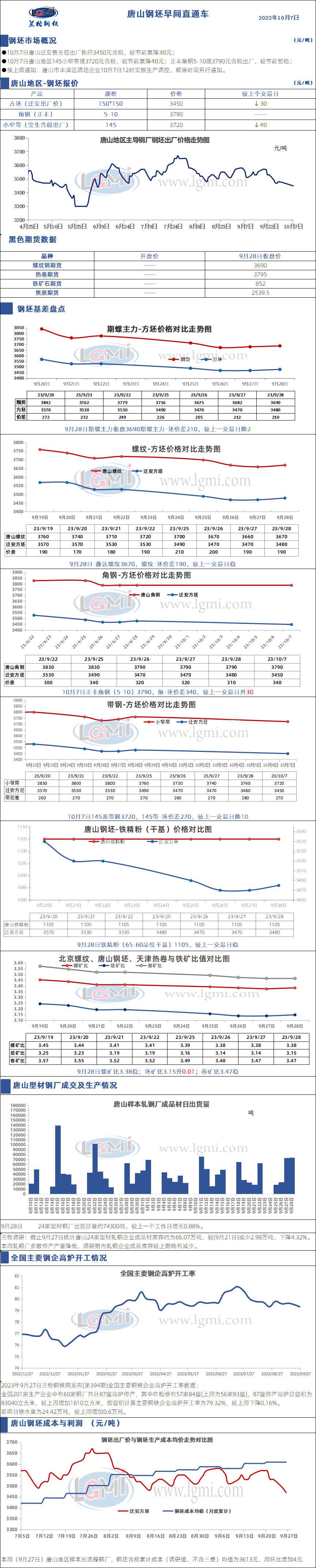- 10月7日唐山钢坯早间直通车2023/10/7