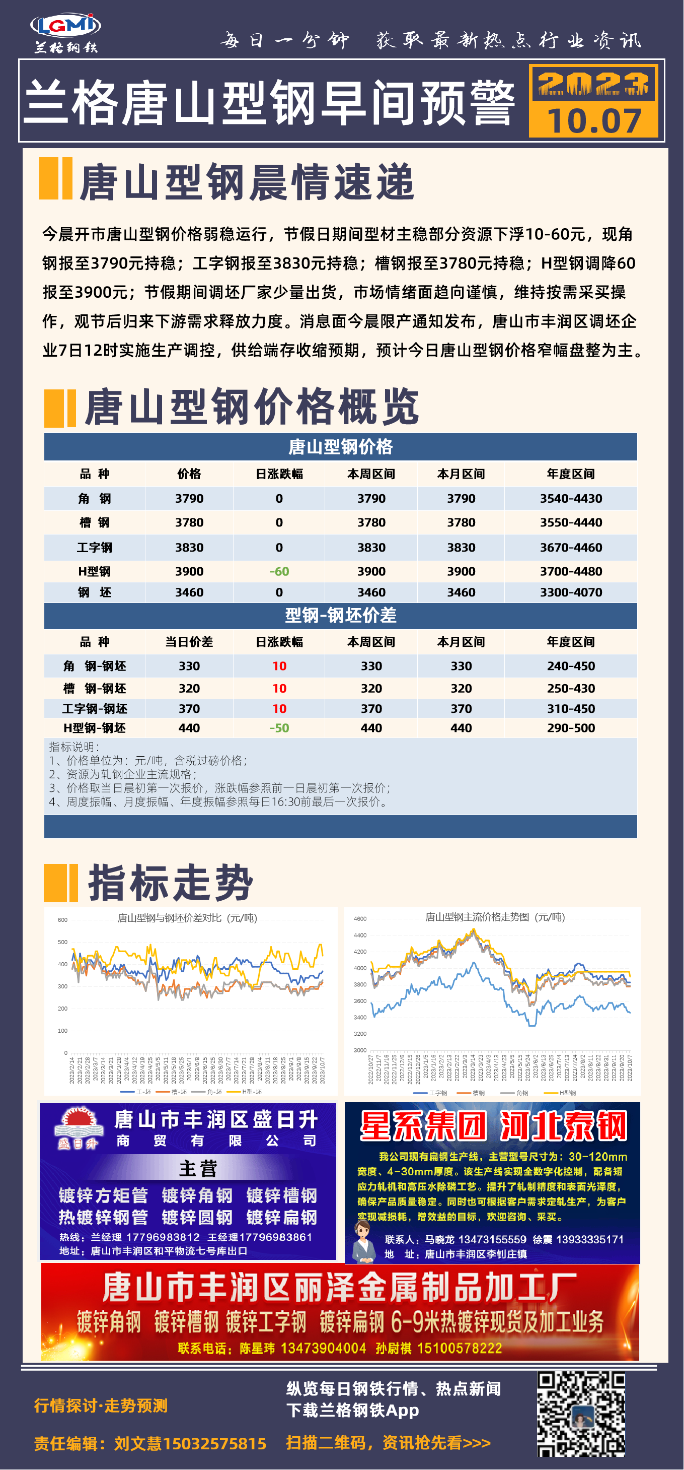 10月7日兰格唐山型钢早间预警