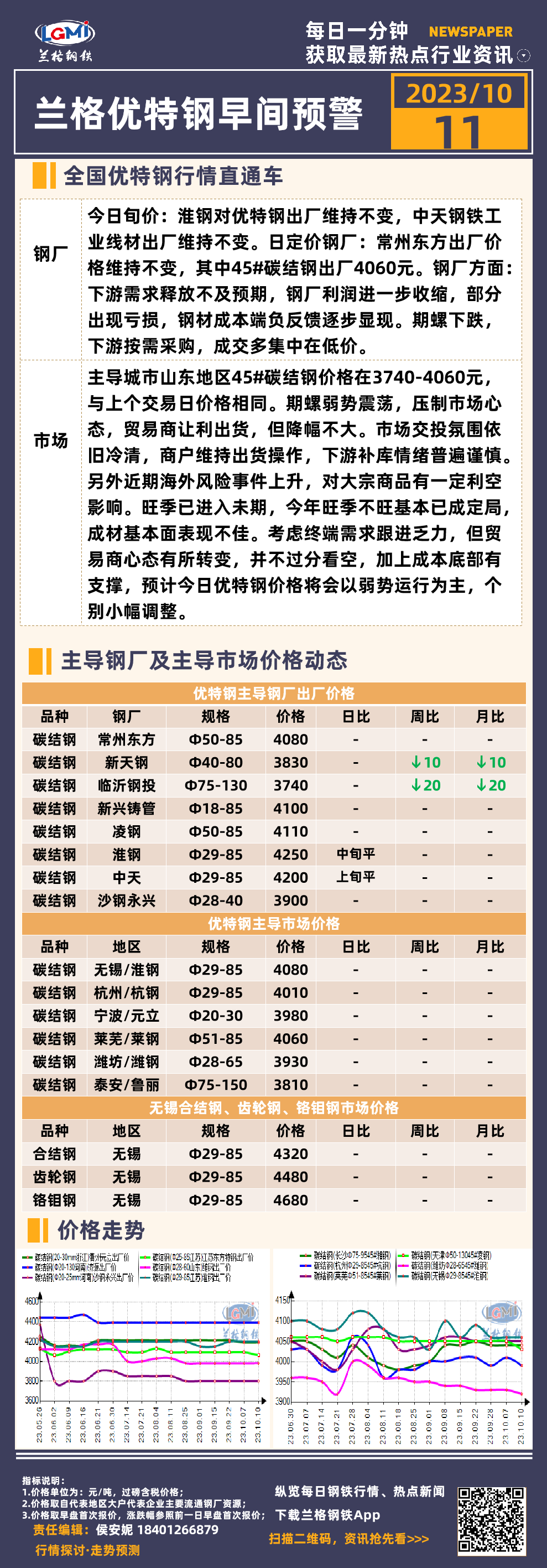 10月11日兰格优特钢早间预警