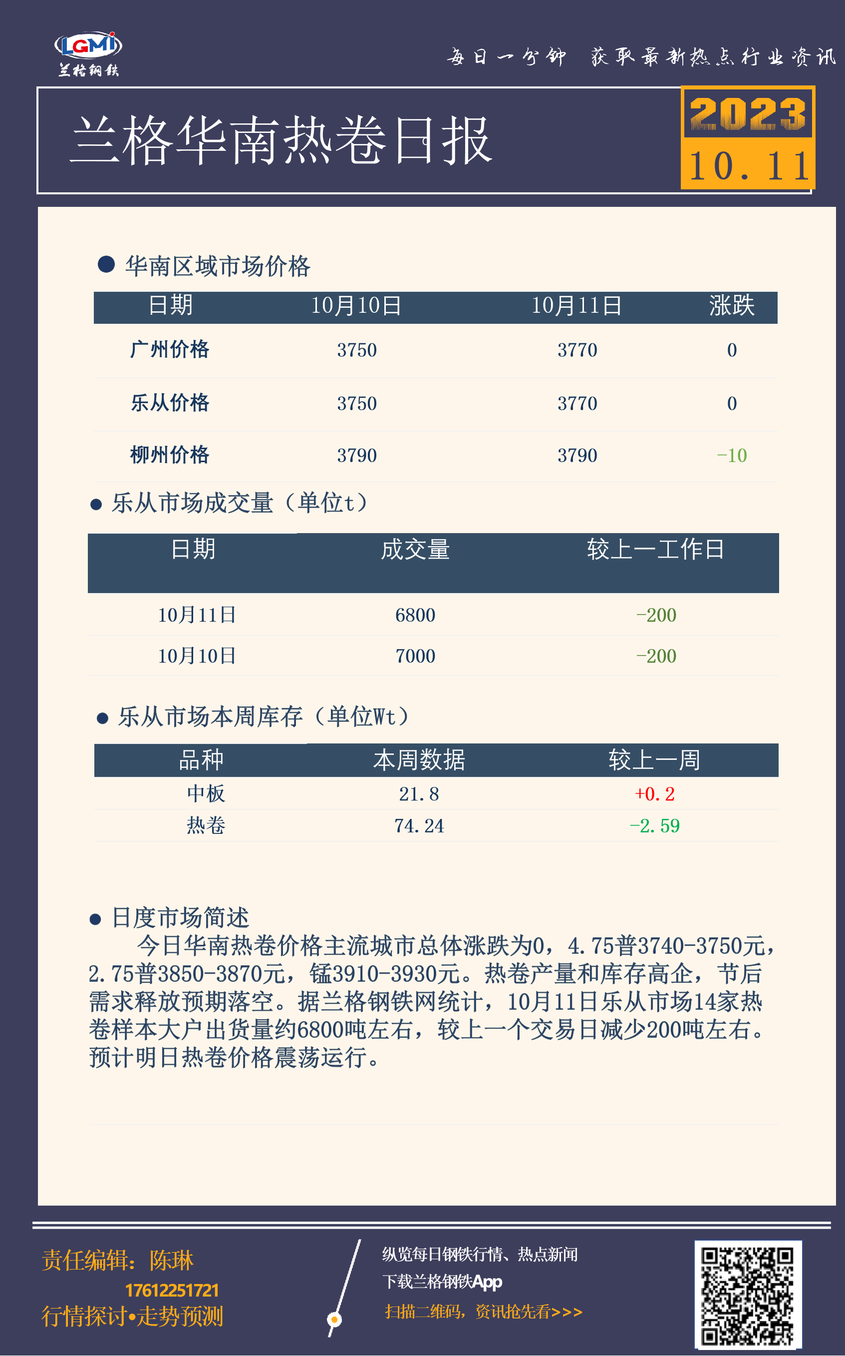 - 华南区域热卷价格先涨后跌 市场成交一般2023/10/11