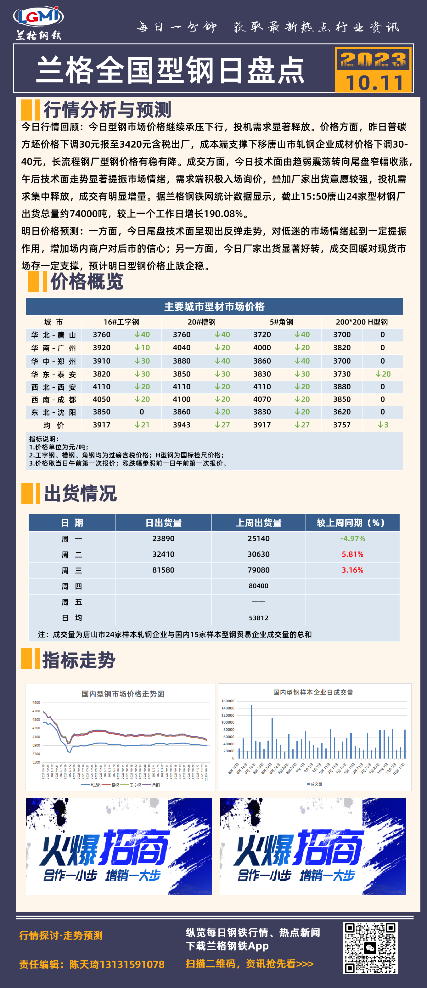 兰格全国型钢日盘点:价格承压下挫 出货有所回温
