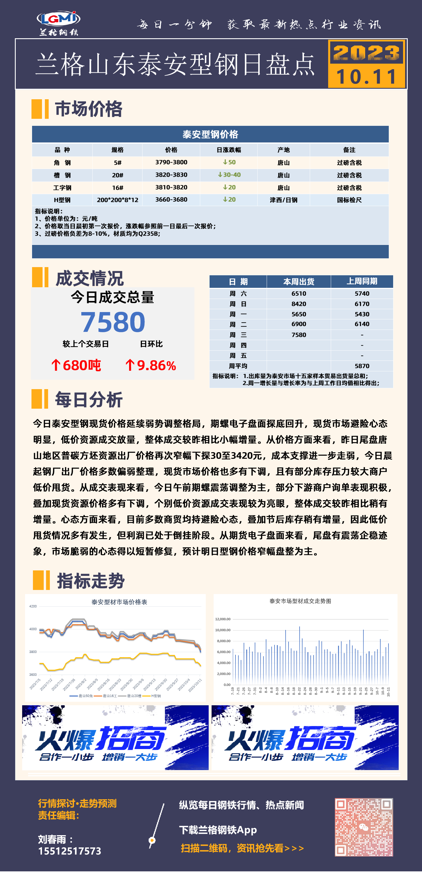 - 兰格数评:亏损加剧 钢铁产量逐渐回落2023/10/11
