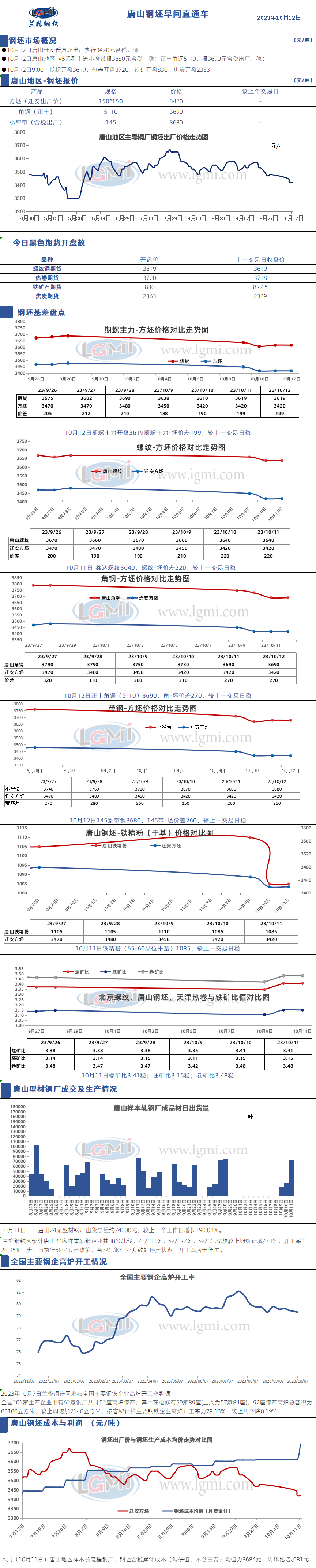 - 10月12日唐山钢坯早间直通车2023/10/12