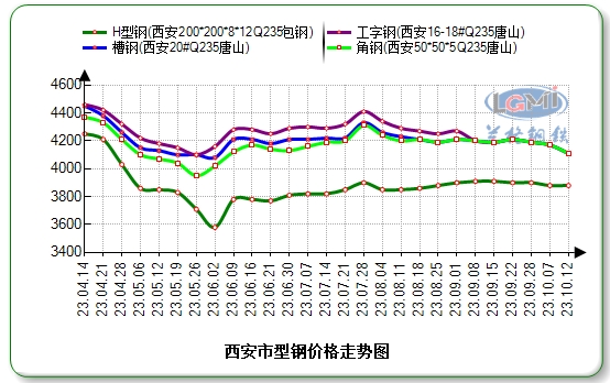 兰格钢铁网调研数据显示:西安市场16-18#工字钢价格为4110元;20#槽钢价格为4110元;5#角钢价格为4110元;200*200H型钢价格为3880元。