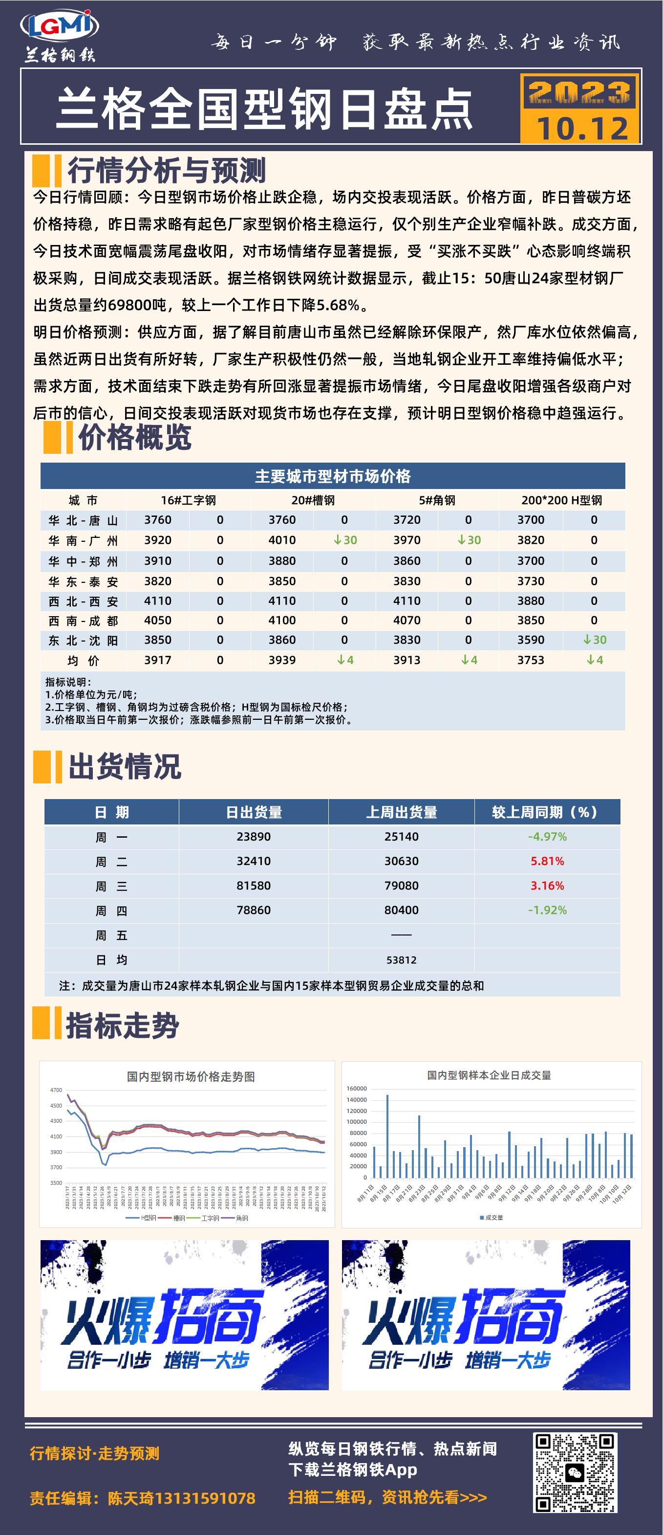 兰格全国型钢日盘点:价格主稳盘整 出货表现尚可