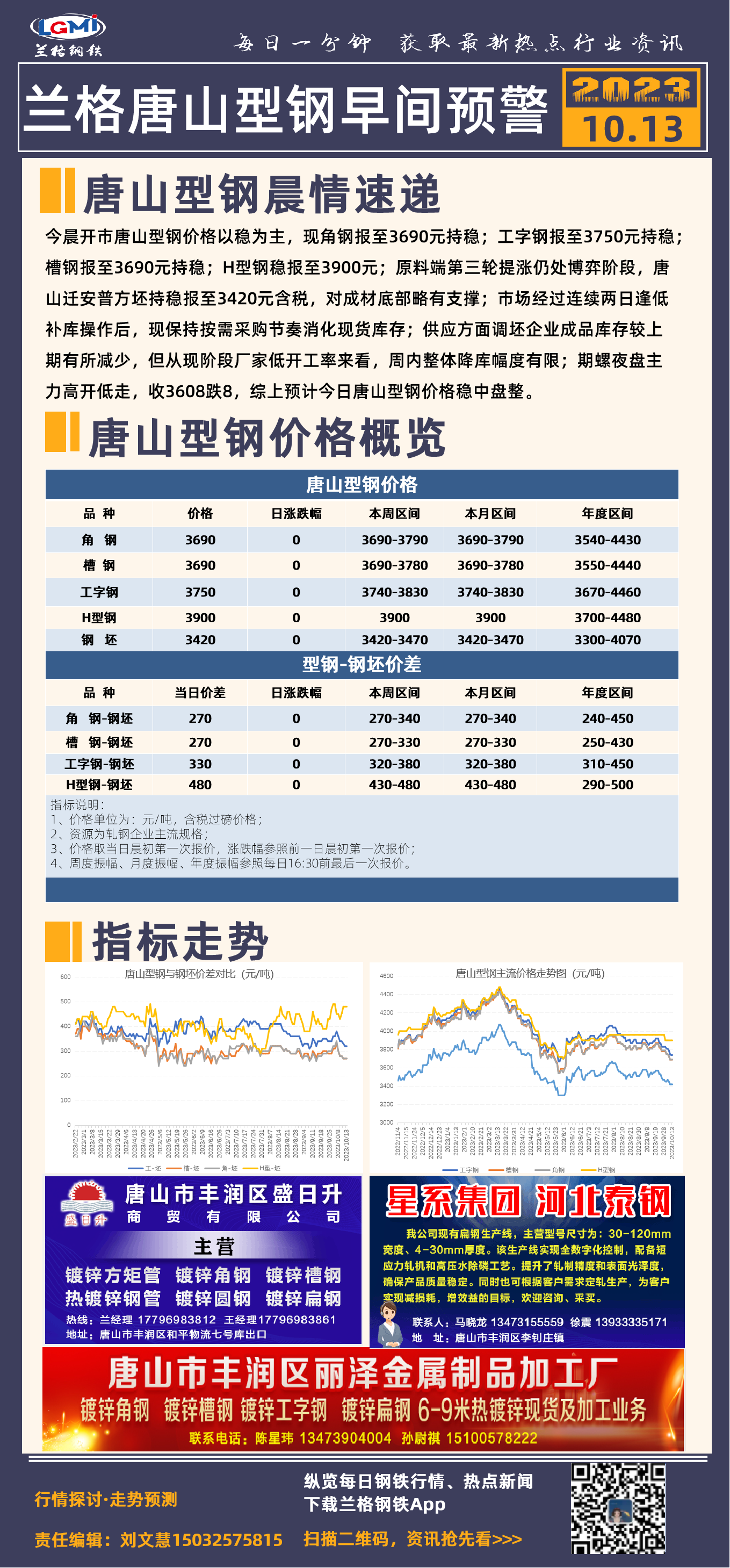 - 10月13日山西晋南钢铁型钢挂牌价格稳2023/10/13