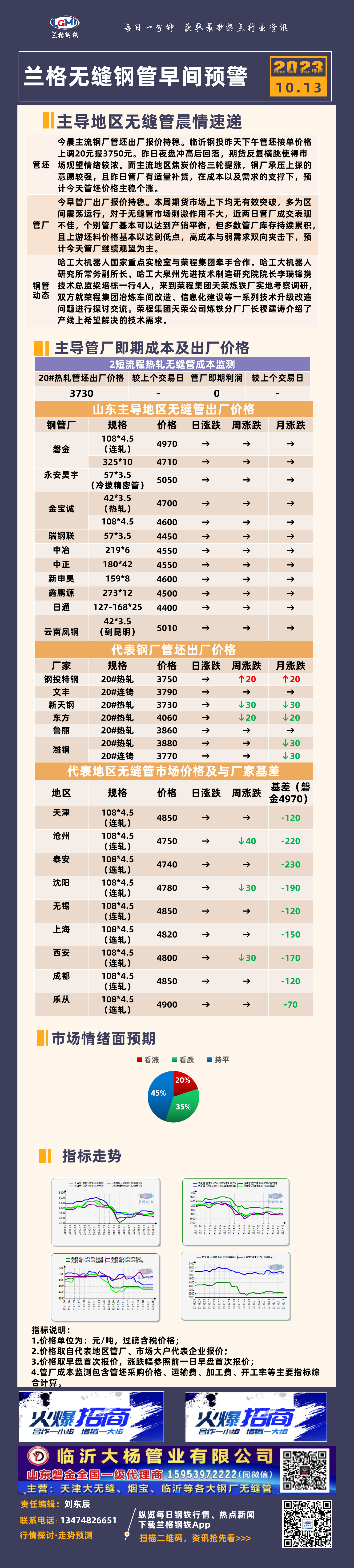 10月13日兰格无缝管早间预警