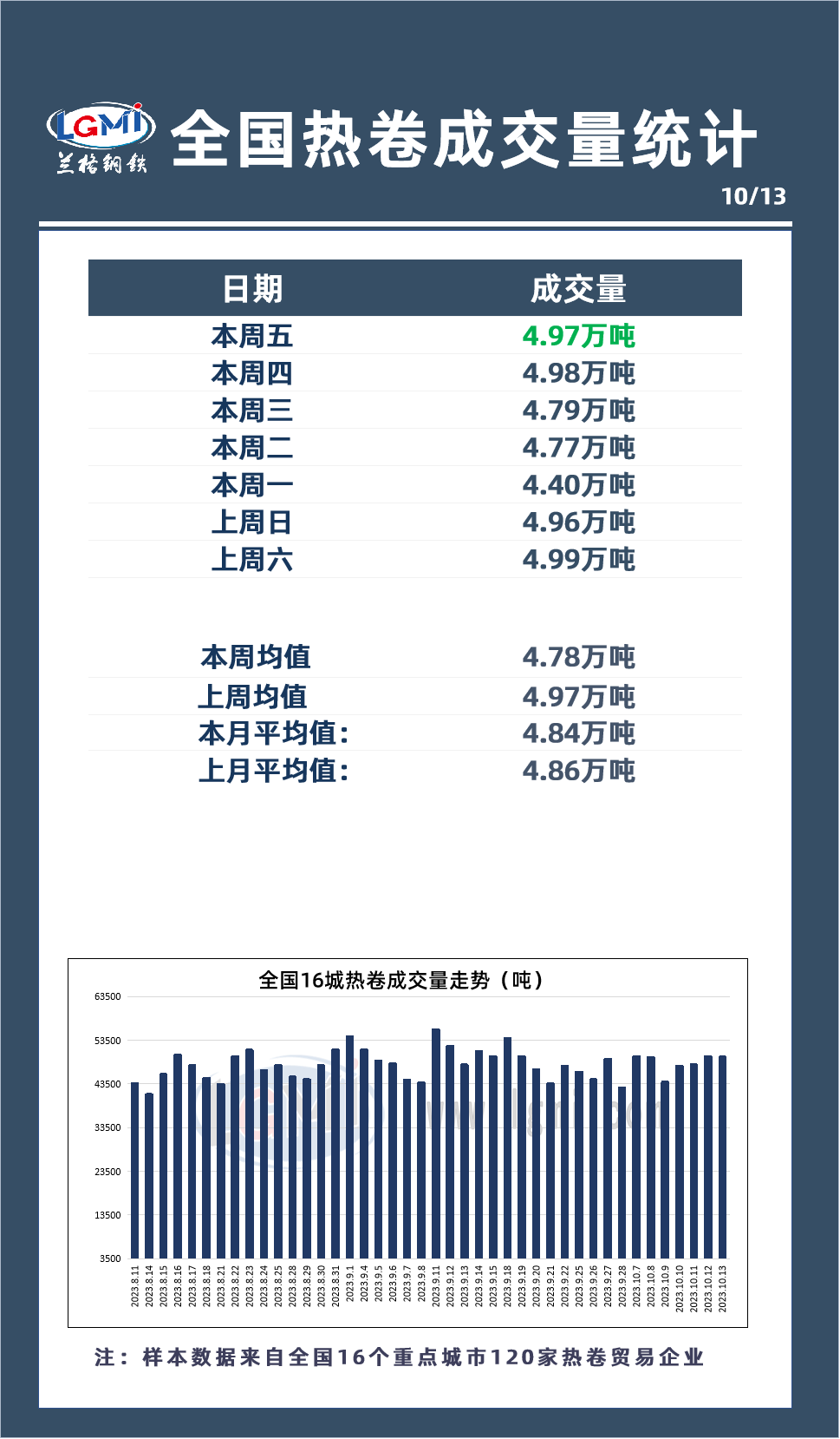 10月13日全国16个重点城市热轧板卷大户日出货量小幅下降