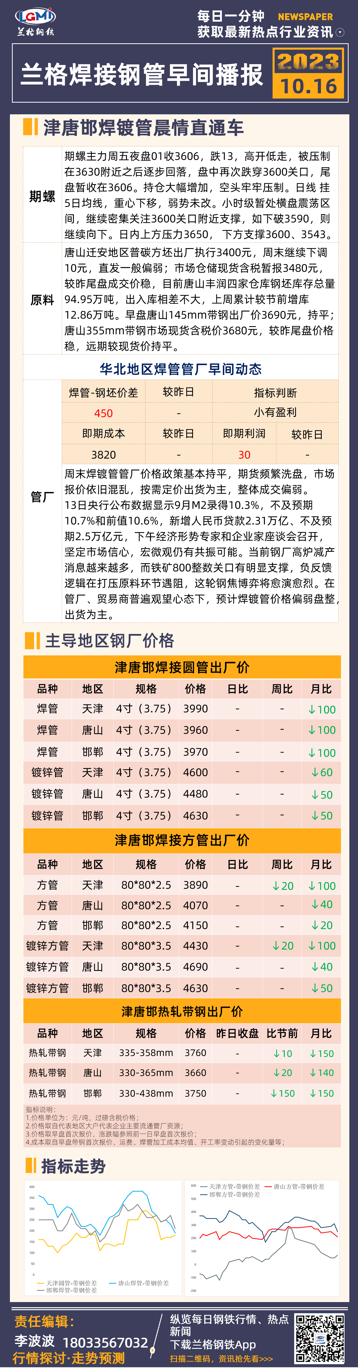 10月16日兰格津唐邯焊管、镀锌管早间速递