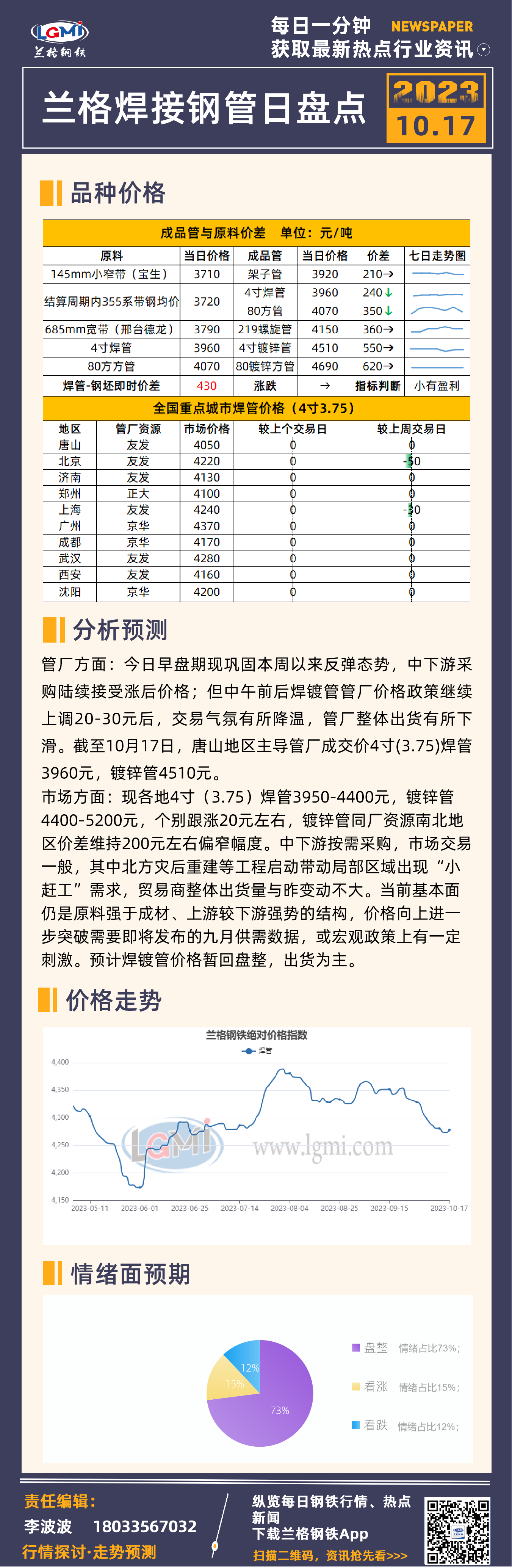 发表日期:2023/10/17 11:47:25 兰格钢铁-李波 兰格钢铁网