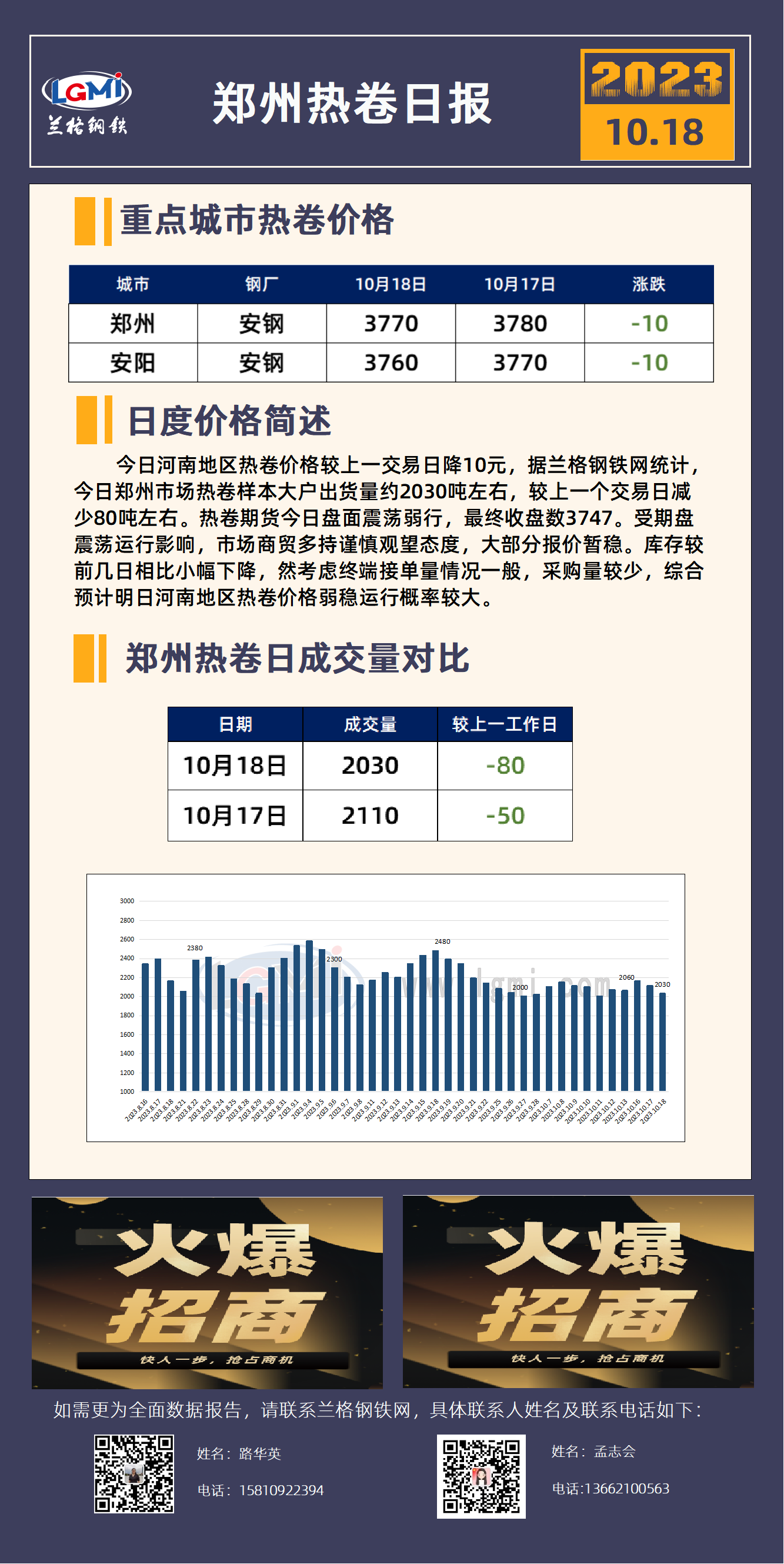 - 郑州热卷价格趋弱 预计明日弱稳运行2023/10/18