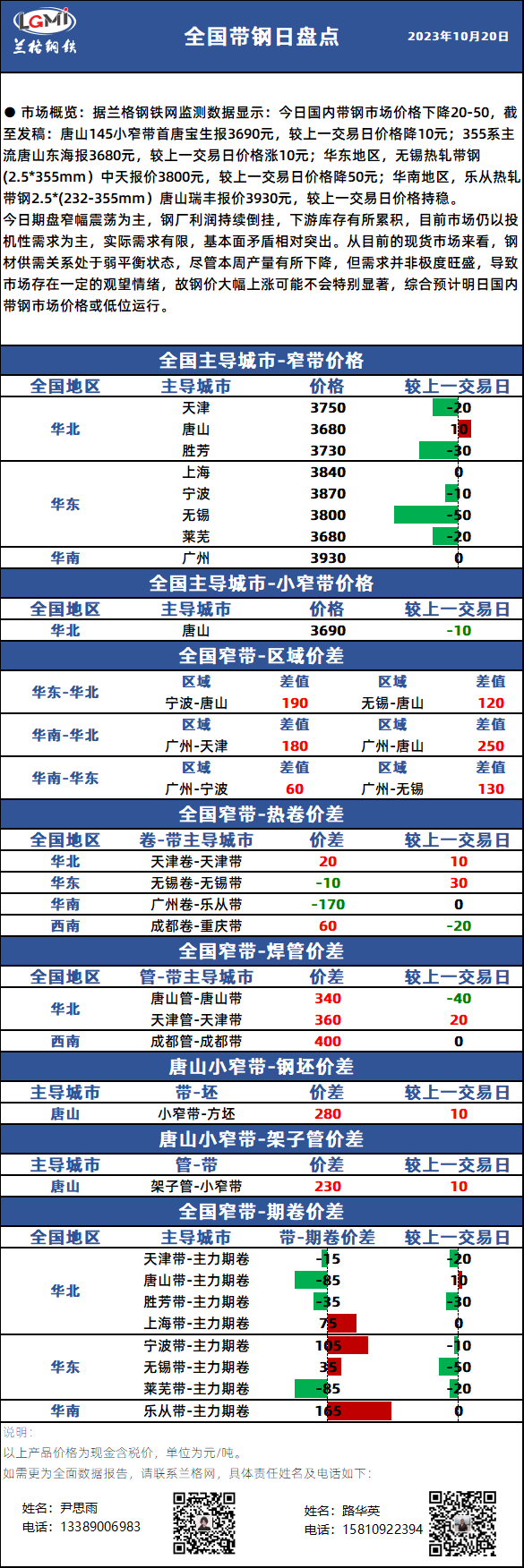 - 兰格带钢日盘点:市场实际需求有限 基本面矛盾相对突出2023/10/19