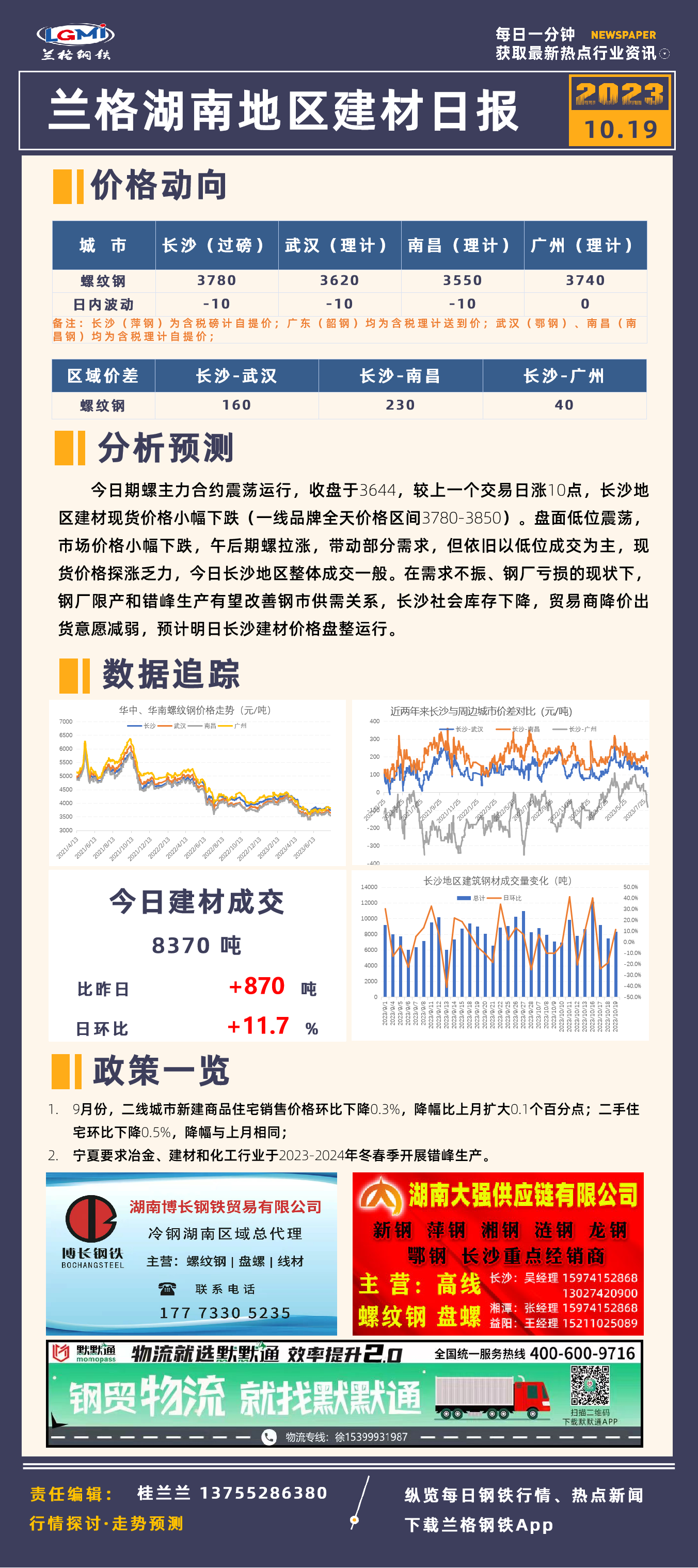 - 长沙建材价格小幅上涨 整体成交较好2023/10/16