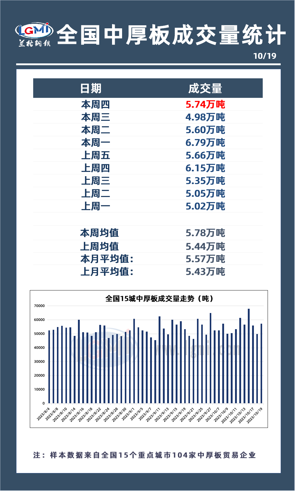 - 10月19日全国15个重点城市中厚板样本大户出货量增加2023/10/19