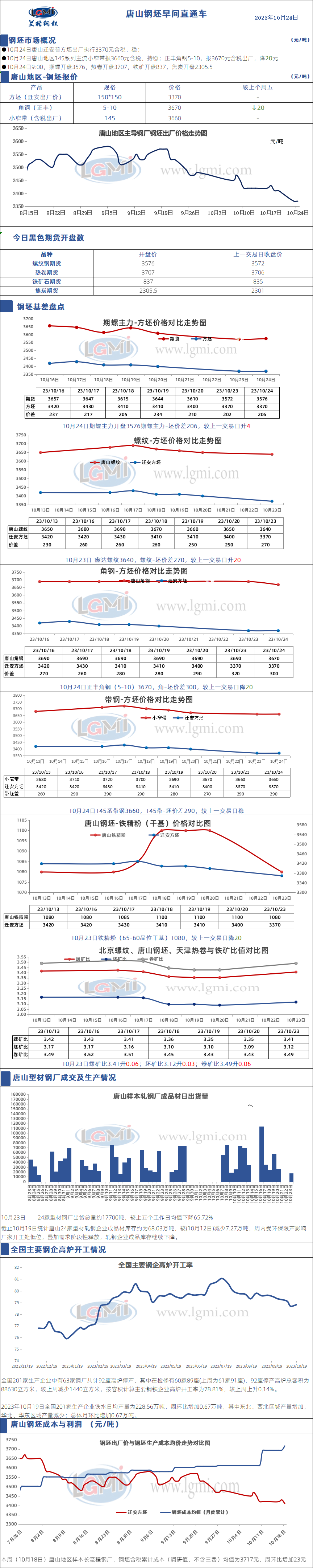 - 10月24日唐山钢坯早间直通车2023/10/24