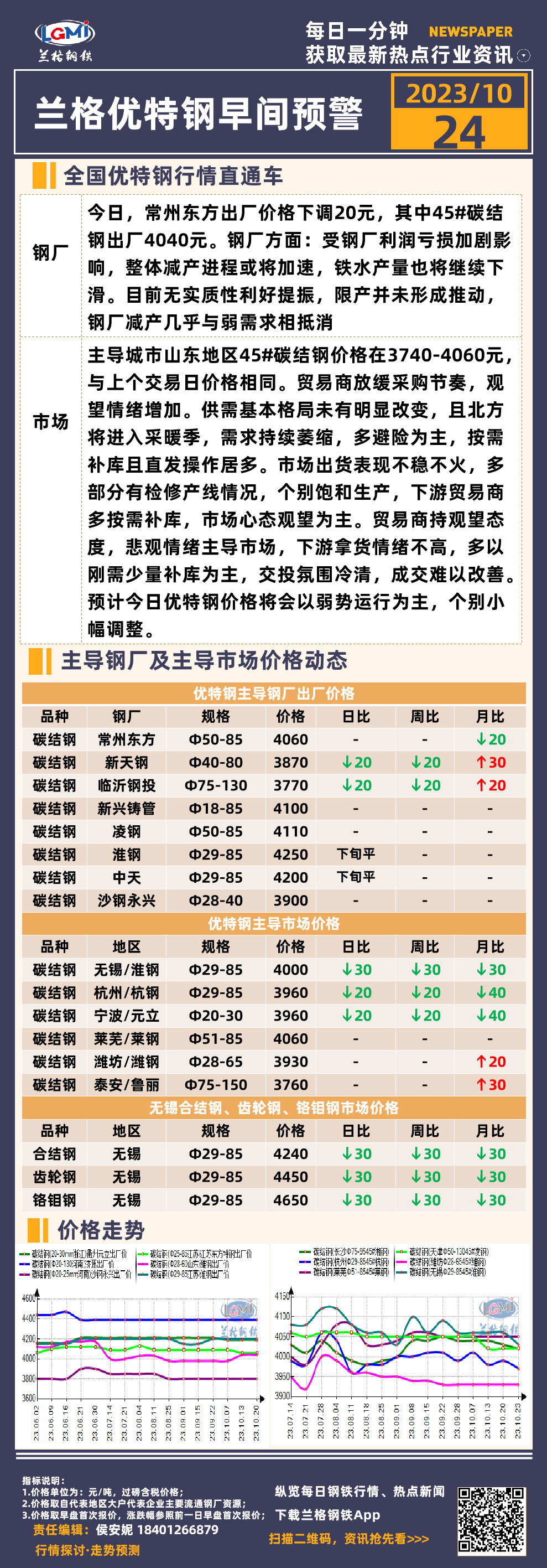 发表日期:2023/10/24 9:26:16 兰格钢铁-侯安妮 兰格钢铁网