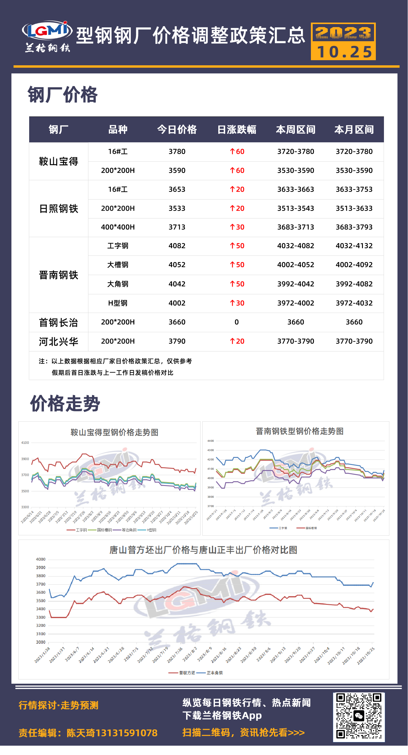 10月25日型钢钢厂价格调整政策汇总