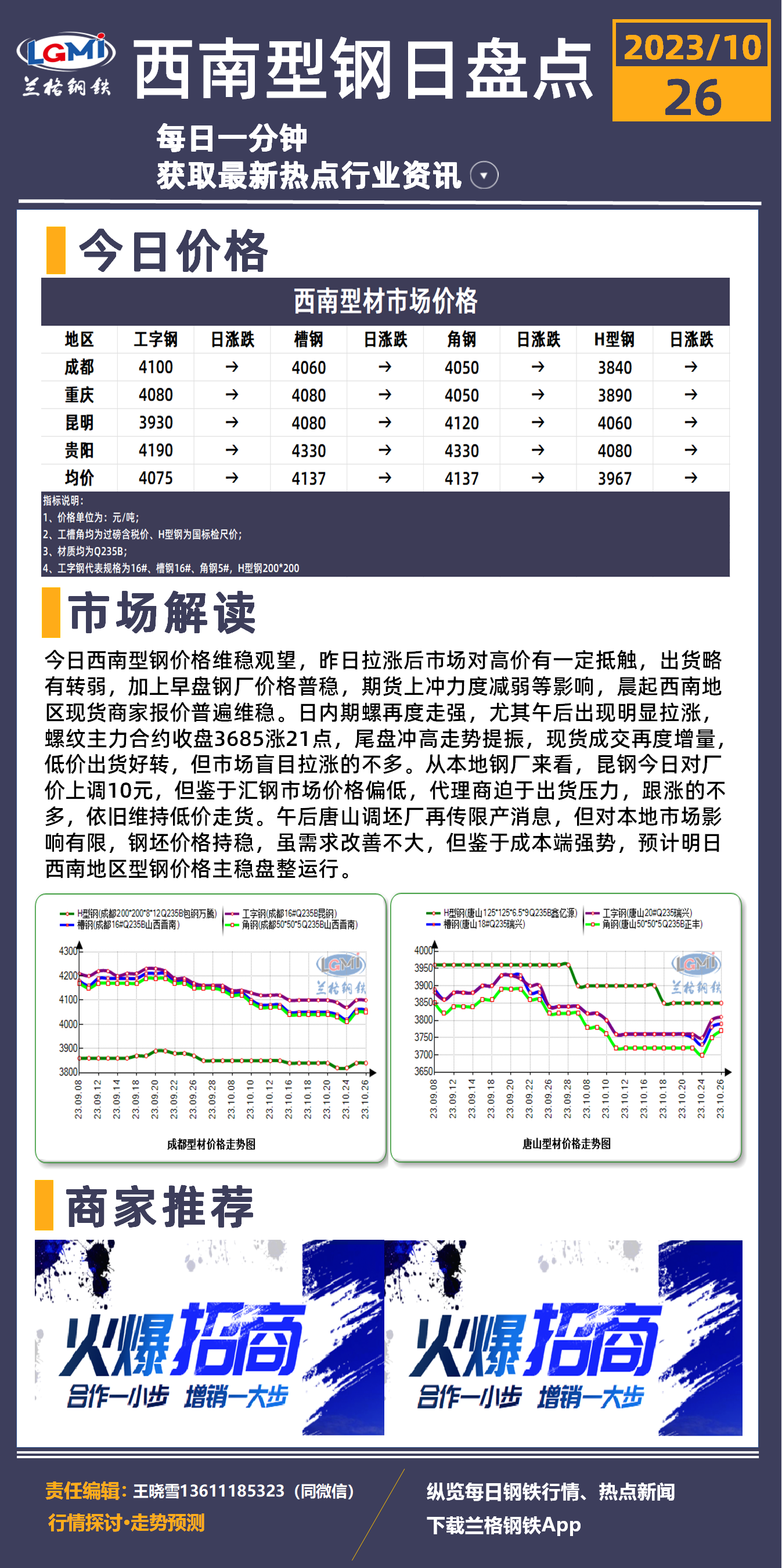 - 10月26日贵阳长乐钢铁建筑钢材出厂价格平稳2023/10/26
