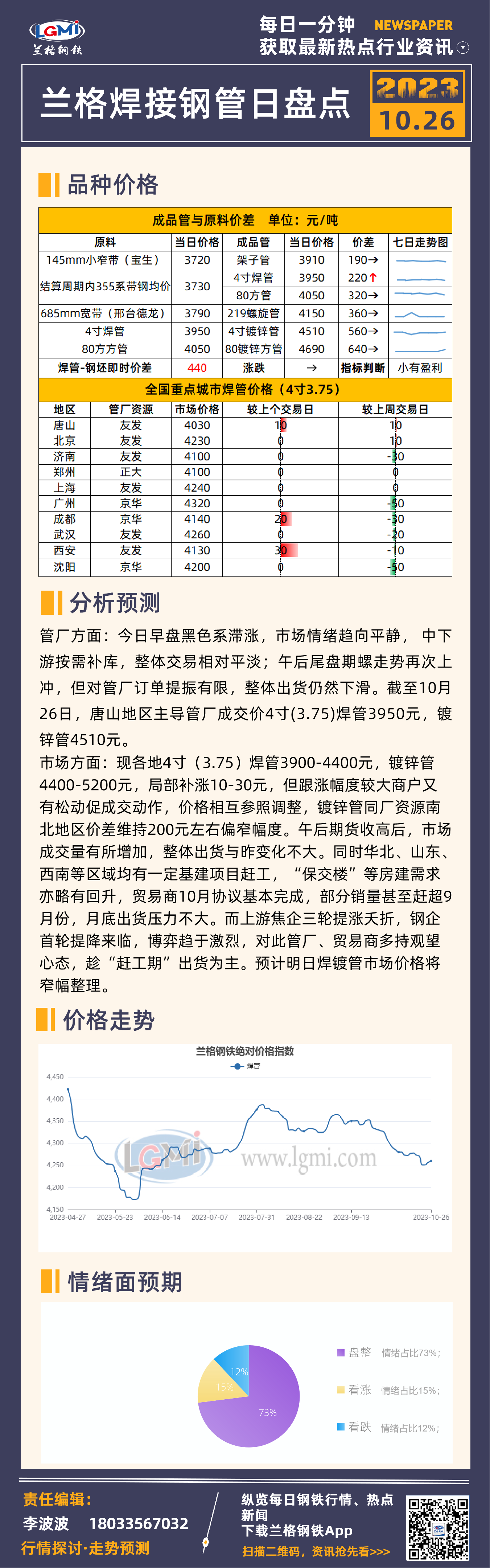 发表日期:2023/10/26 17:48:33 兰格钢铁-李波 兰格钢铁网