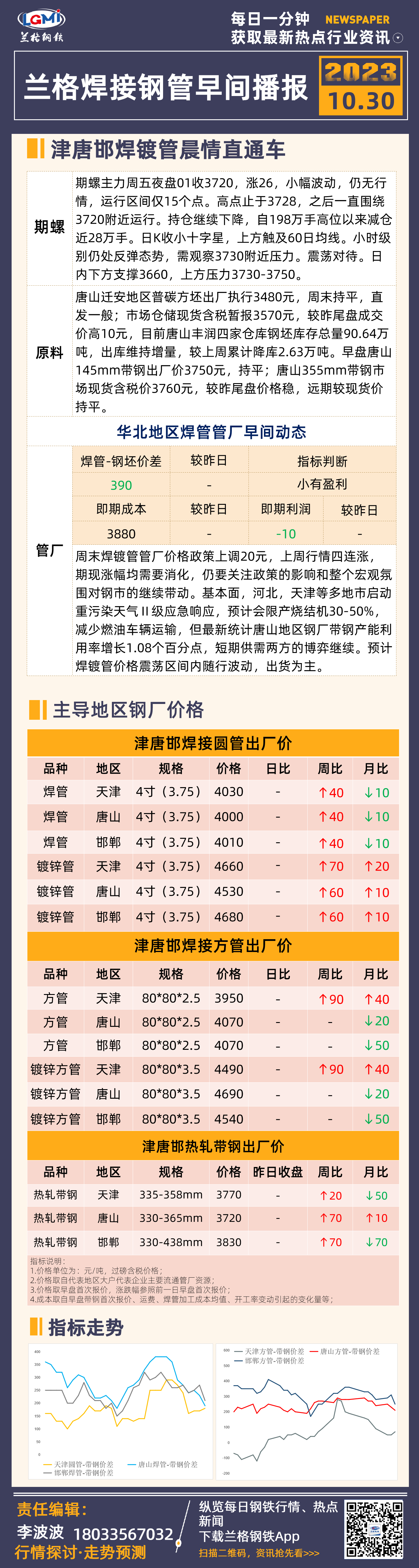 10月30日兰格津唐邯焊管、镀锌管早间速递