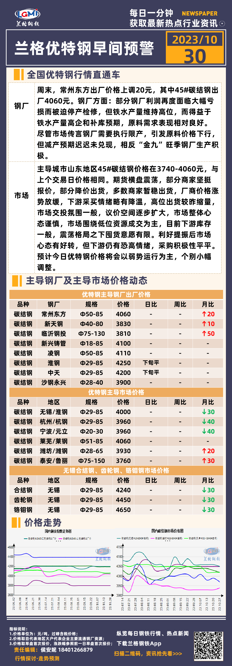 发表日期:2023/10/30 9:27:09 兰格钢铁-侯安妮 兰格钢铁网
