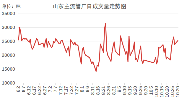 图3 2022年6月-2023年10月山东主流民营无缝管厂成交量走势图