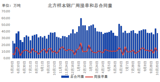 图5 2022年-2023年北方9家钢厂管坯接单以及总合同量