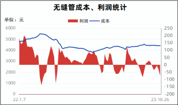 图6 2022年-2023年 短流程管厂热轧无缝管成本、利润走势图