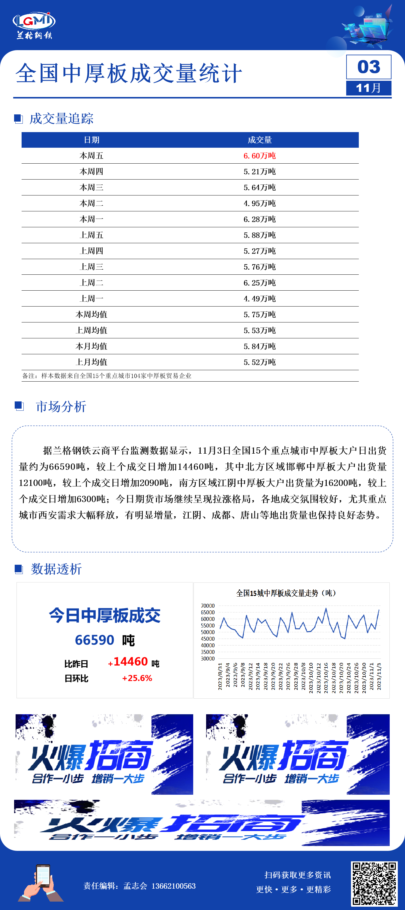 - 11月3日全国15个城市中厚板大户成交量2023/11/3